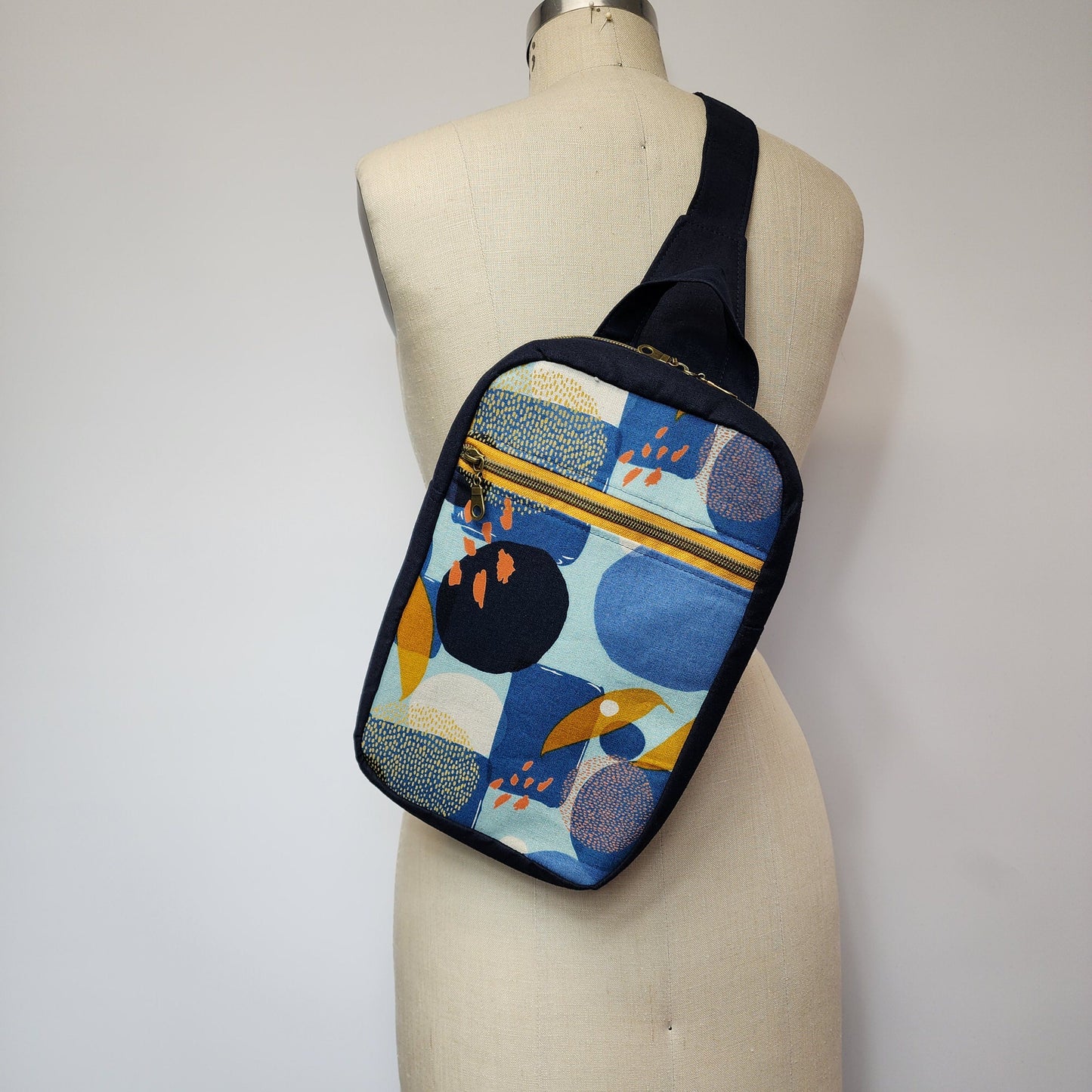 Sling Cross Body Bag in Retro Shapes Barkcloth